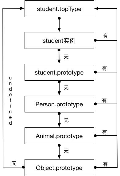 正如上面的例子,在调用 student.topType 时,是如何得到”脊椎动物”的,在前面的hasOwnProperty知识中,曾经有过涉及,即: